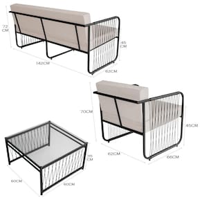 Este elegante conjunto foi desenvolvido para transformar seu ambiente interno com sofistica??o e conforto. Com estrutura em a?o carbono de alta qualidade e acabamento em fibra sint?tica, oferece resist?ncia e durabilidade para suportar as diversas ocasi?es, ideal para ?reas como gourmet, externas, de churrasqueira, recep??o, ed?culas e muito mais.