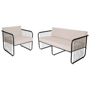 Conjunto 1 Poltronas E Namoradeira Fibra Sintética Córdova Preto-branco