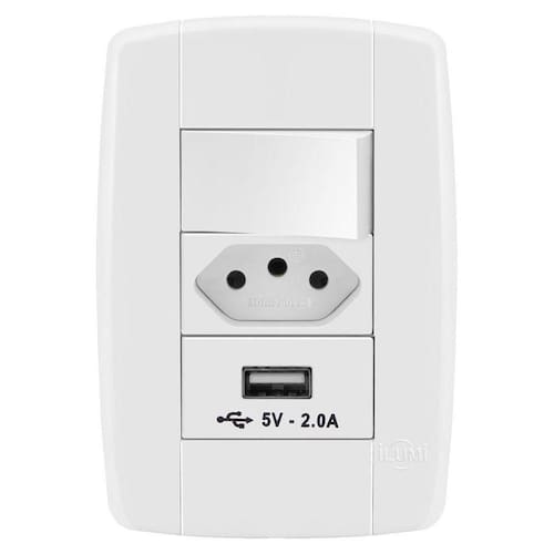 Linha Modular Ilumi LevConjunto Completo e Desmontado com:1 Módulo de Tomada USB - 5V - 2.0A1 Módulo de Interruptor Simples1 Módulo de Tomada 20A1 Placa 4X2 com suporte para 3 Módulos2 ParafusosPara montar é fácil, apenas um click. só encaixar Marca de conformidade de produtos certificados.Vídeo demonstrativo da Linha Ilumi Lev: