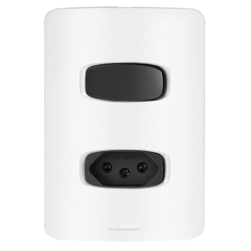 Alumbra Gracia - Placa Branca / Módulos Pretos / Interruptores e Tomadas Conjunto Completo Desmontado com: 1 Módulo de Interruptor Simples 1 Módulo de Tomada 20A 1 Placa para 2 módulos 4X2 1 Suporte 4X2 2 Parafusos Para montar é apenas um click, apenas encaixar