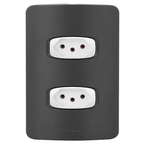 Alumbra Gracia - Placa Black Maxx / Módulos Brancos / Interruptores e Tomadas Conjunto Completo Desmontado com: 1 Módulo de Tomada 10A 1 Módulo de Tomada 20A 1 Placa para 2 módulos 4X2 1 Suporte 4X2 2 Parafusos Cor: Preto Para montar é apenas um click, apenas encaixar