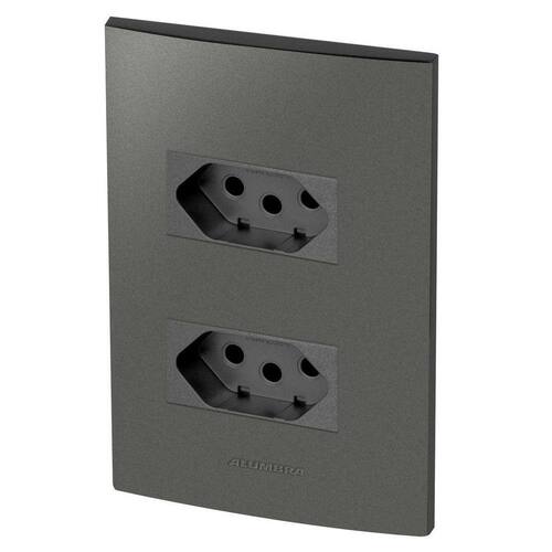Alumbra Inova Pro Class - Placas Grafite / Módulos Grafite Linha Modular de Interruptores e Tomadas Conjunto Completo Desmontado: 1 Módulo de Tomada 10A 1 Módulo de Tomada 20A 1 Placa 4X2 para 2 Módulos 1 Suporte 4X2 2 Parafusos Cor: Grafite Para montar é apenas um click, só encaixar