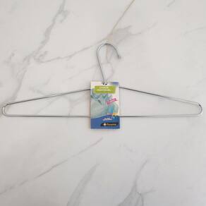 Garantia: 90 dias / Peso: 700g / Cor: cromado / Ref: 10033X10 Dimensões: 42cm (C) x 0,50cm (L) x 17,5cm (A); Capacidade: 01 peça de roupa cada cabide; Conteúdo: 10 cabides.