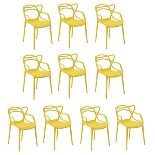 Conjunto com 10 cadeiras injetadas em peça única, com quatro pernas de apoio e sapatas incolores. Encosto vasado com assento inteiro abaulado. Empilhável. Possui certificação do Inmetro. Acabamento: Polipropileno Altura do Conjunto: 82.5 cm Ambiente: Sala de Jantar Ambiente Principal: Sala de Jantar codigo_ean: 7909903346495 Cor: Amarelo Cor do Produto: Amarelo Informação Complementar: 1x Kit 4 Cadeiras Allegra Amarelo Largura: 53 cm Altura: 82,5 cm Peso: 4,5 kg Profundidade: 57 cm Necessita Montagem: Não