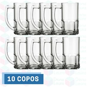 DESCRIÇÃO: A Caneca Vitamina ou Chopp 320ML são especialmente desenhadas para não influenciar no sabor da cerveja, são robustas e muito resistentes, sua alça bem fixada com apoio para o polegar auxilia na segurança da caneca, para momentos especiais. Muito resistente e elegante, irá se tornar uma peça indispensável para completar o bar, restaurante ou até mesmo sua cozinha. CUIDADOS: Para limpeza, remova a sujeira com uma esponja macia, tire todo o resíduo de sabão e seque bem; Não utilize abrasivos ou utensílios pontiagudos; Submeter o vidro a mudanças bruscas de temperatura pode causar choque térmico e danificar seu produto; Evite impacto. INFORMAÇÕES ADICIONAIS: MODELO: Caneca Vitamina COR: Transparente MATERIAL: Vidro ALTURA: 13CM DIÂMETRO: 7,5CM CAPACIDADE: 320ML PESO: 500G ITENS ENVIADOS: 10 Canecas Vitamina conforme a descrição acima. Ean: 7808113459028