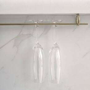 Evite empilhar e quebrar suas taças com este conjunto de 10 suportes organizadores de taças 42cm com acabamento em alto brilho na cor dourado que traz ainda mais elegância ao ambiente. Uma solução única para armazenar e manter suas taças sempre à mãos e também decorar, os suportes porta taças são ideais para otimizar o espaço nas prateleiras e melhorar a organização. Podem ser fixados em nichos, na cozinha, no bar da sala ou até mesmo dentro de armários.