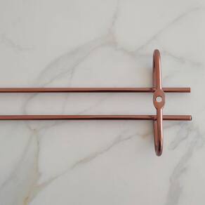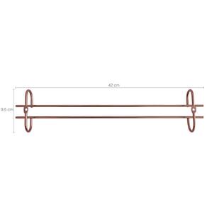 Garantia: 90 Dias / Peso: 1,78Kg / Cor: Rose gold / Ref: 83071X10 Dimensões de cada: 42cm (C) x 9,5cm (L) x 4cm (A) Distância entre os parafusos: 35cm Distância das hastes: 2cm Abertura para base da taça: 8cm Conteúdo: 10 Suportes.