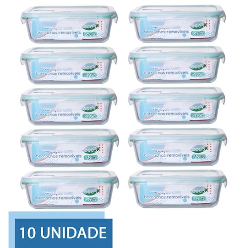 10 Pote de Vidro 1520ml com Tampa Hermética