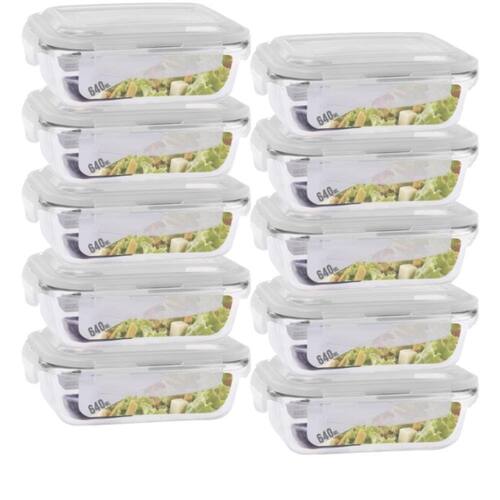 Conjunto 10 Potes 640ml Vidro Hermético 4 Travas Marmita 10 Potes de Vidro com tampa hermética Retangular 640ml