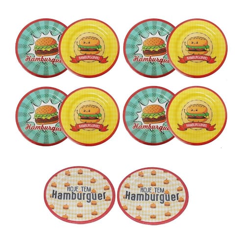 Prato Redondo de Melamina – Estampa Colorida de HambúrguerDeixe suas refeições mais divertidas com este lindo prato redondo de melamina! Com uma estampa vibrante e criativa de hambúrguer, ele é perfeito para servir lanches, refeições rápidas ou até mesmo pratos especiais com um toque de descontração.- Material: Melamina resistente e durável- Diâmetro aproximado: 20 cm- Estampa colorida e alegre- Ideal para refeições temáticas, festas ou o dia a dia- Torna sua mesa mais divertida e cheia de estilo* O ENVIO DAS ESTAMPAS SERÁ ALEATÓRIO!Itens Inclusos:10 Pratos em melamina Marca: Não Informado