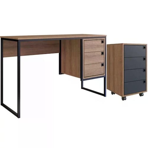 Conjunto para Escritorio 02 Peças, possui destaques versáteis, que proporciona um estilo ideal para deixar o ambiente ainda mais moderno. Estrutura em MDP de 15mm, que proporciona melhor acabamento nas bordas e superfícies, contando com pintura Finish Foil (Fosco) que também é conhecido como FF atendendo a todos os requisitos de qualidade e durabilidade. O conjunto é composto por uma mesa com tampo em MDP 15mm seguindo as tendências de decoração mais atuais, base totalmente reforçada em metal de 15mm, 03 gavetas com corrediças metálicas, puxadores plásticos, conta com sapatas plásticas, e um gaveteiro com 04 gavetas com corrediças metálicas que suportam até 5 kg cada, tampo superior suporta até 10 kg, e acompanha 04 rodízios. É a escolha certa para você que quer complementar seu mobiliário, tornando o ambiente em que estiver muito mais moderno. Fácil de montar e com acabamento office que deixa o móvel ainda mais elegante. Estes móveis chegarão em sua casa separados em 02 volumes.