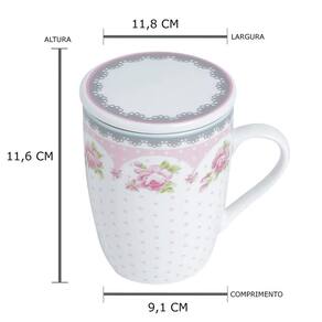 Conjunto 12 Canecas de Porcelana Xícaras de Chá 310ml com Tampa Filtro Inox Infusor Lyor Rosa.