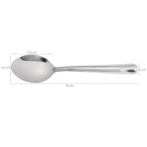 Conjunto 12 Colheres Pequenas para Sobremesa Aço Inox Linha Verão Martinazzo #Aço inoxidável #Linha Verão #Martinox Garantia: 90 Dias / Peso: 212g / Cor: Inox / Ref: 51230 Dimensões de cada colher: 16cm (C) x 3,5cm (L) x 1,5cm (A). Cabo: 10,5cm Espessura: 1mm. Cuidados: Não lavar com materiais abrasivos. Conteúdo: 12 colheres. Material: - Aço Inox. O conjunto de colheres para sobremesa é composto por 12 peças produzidas em aço inox, material com ótima resistência e durabilidade. Um modelo clássico com detalhe no cabo para deixar sua mesa com um toque de elegância. Cada colher de sobremesa possui medidas de 16cm x 3,5cm.