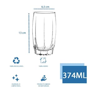 Conjunto Copos De Vidro Transparente Long Drink Amadeus 374ML 12 Unidade