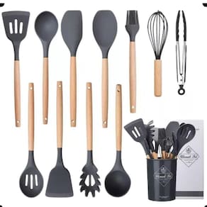 Conjunto 12 Pçs Cabo Madeira Barato KIT 12 UTENSÍLIOS COZINHA Transforme sua experiência na cozinha com o incrível Kit de Utensílios em Silicone Este conjunto premium de 12 peças é projetado para proporcionar praticidade, durabilidade e estilo à sua culinária. Com cabos de madeira ecológica e silicone de alta qualidade, este kit é ideal para preparar suas refeições favoritas com facilidade e elegância. CONTEÚDO DA EMBALAGEM: 1 Colher Escumadeira 1 Espátula Sólida 1 Colher para Servir 1 Espátula Vazada 1 Colher Raspadora 1 Espátula Raspadora 1 Pegador de Macarrão 1 Concha de Sopa 1 Pincel Culinário 1 Pinça Pegador 1 Fouet Batedor 1 Baldinho Guardador CARACTERÍSTICAS: Material de alta qualidade: Silicone, Aço Inox e Madeira Resistência ao calor: Suporta temperaturas de até 230C Seguro e durável: Cabos em madeira proporcionam segurança mesmo em calor intenso Não danifica as panelas: Silicone e madeira evitam riscos e danos aos revestimentos antiaderentes Fácil de limpar: Material não absorve odores nem manchas Design elegante e funcional: Furos para pendurar e lindo baldinho para armazenamento organizado ESPECIFICAÇÕES: Peso Total: 1,3kg Material: Silicone, Aço Inox e MDF : legal de 90 dias conforme CDC. do vendedor: 7 dias Chamada para ação: Eleve sua experiência na cozinha hoje mesmo Adquira o Kit de Utensílios em Silicone e descubra o prazer de cozinhar com qualidade e estilo.