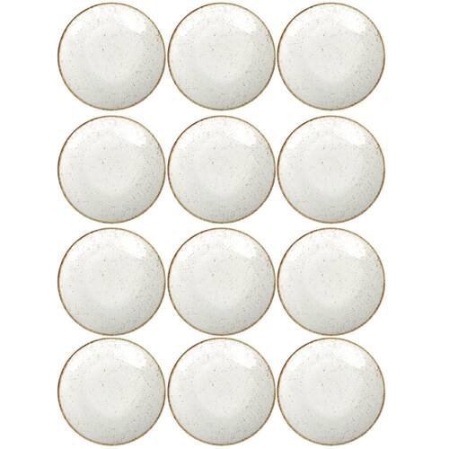 Conjunto 12 Pratos de Porcelana Tramontina para Sobremesa 21cm Rústicos Decorados Marrom.