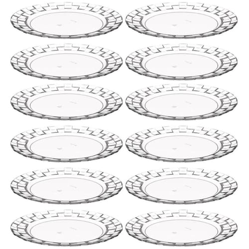 Conjunto 12 Pratos Médios Plástico Transparente para Servir Sobremesas Lanches.