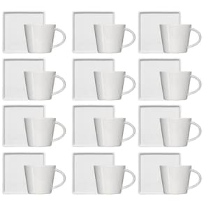 Conjunto 12 Xícaras Café Chá Porcelana Branca 185ml Píres Quadrado Americana Germer.Garantia: 90 dias / Peso: 5,3kg / Cor predominante: branco / Referência: 7798137692412;Dimensões de cada xícara: 10,5m (C) x 8cm (D) x 6,5cm (A);Capacidade de cada xícara: 185ml;Diâmetro de cada pires: 12cm;Conteúdo: 12 xícaras e 12 pires;Material: porcelana.Cuidados e limpeza:- Ao usar o produto pela primeira vez, lavar bem a peça com esponja macia e sabão neutro;- Higienizar sempre com esponja macia e sabão neutro;- Compatível com microondas e a lava-louças.Este conjunto de 12 xícaras com pires é ideal para quem gosta de sofisticação e beleza ao servir o chá ou café. O jogo conta com 12 xícaras de porcelana e 12 pires com formato quadrado, dando um toque ainda mais especial a sua composição de mesa posta. Surpreenda seus convidados ao servir com esse conjunto xícara de chá. Peças produzidas em porcelana de excelente qualidade, podendo ser levada ao microondas ou lava-louças. Perfeito para serviços de café da manhã, room service e cafeterias, bem como restaurantes e hotéis.