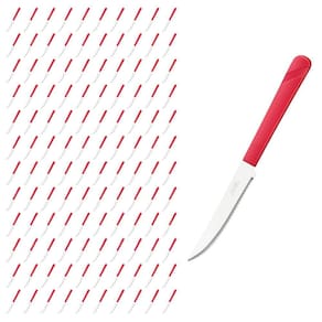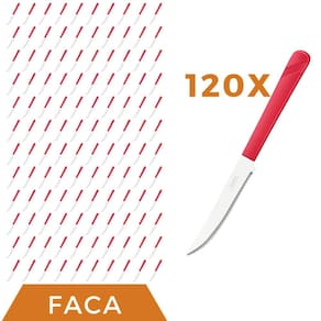 Conjunto de Facas As facas de mesa da linha Luna são um conjunto elegante e funcional para qualquer mesa de jantar. Com um cabo vermelho vibrante feito de plástico de alta qualidade, estas facas são confortáveis de segurar e fáceis de identificar em meio a outros utensílios de mesa. O aço inox de alta qualidade das lâminas garante que elas permaneçam afiadas por um longo tempo, enquanto o design elegante torna as facas uma adição atraente à sua coleção de utensílios de cozinha.