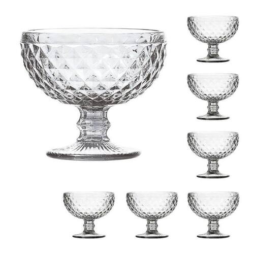 Conjunto 18 Unidades Taça de Vidro Sobremesa Bico de Abacaxi Conjunto de Taça de Vidro Sobremesa Bico de Abacaxi ===================================== Com um design clássico de origem portuguesa do século XX, reconhecido mundialmente pela sua lapidação em relevo que lembra a textura da fruta abacaxi, criando um efeito visual encantador que reflete a luz e adiciona requinte à apresentação dos alimentos.
