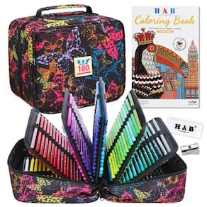 Este conjunto H & B oferece 180 lápis de cor com minas à base de óleo, acompanhados de borracha, apontador e livro para colorir, indicado para uso a partir de 14 anos em desenho e coloração. As minas são formuladas para equilíbrio entre maciez e firmeza, proporcionando traço suave e boa resistência à quebra.