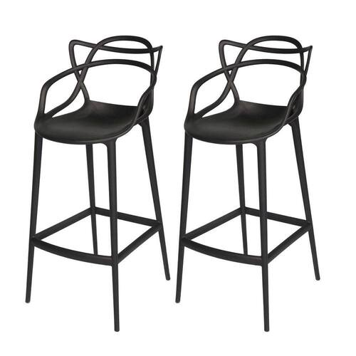 Conjunto 2 Banqueta Allegra Alta Master Empilhavel Resistente Preta Cozinha Americana Balcão Polipropileno