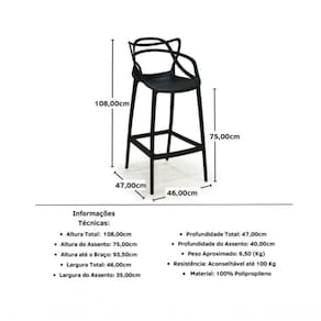 Produto indicado para bancadas acima de 110cm, para bancadas abaixo de 110 cm compre o modelo banquetas médias com 66cm do chão ao assento. ***