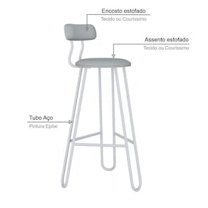 Conjunto 2 Banquetas Alta Ginger Com Encosto Courino Saturno Off White