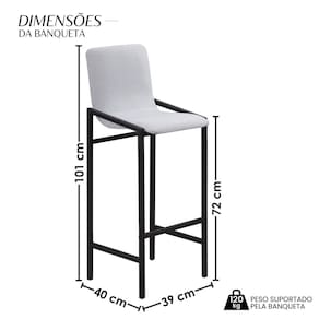 Com design funcional e toque contemporâneo, esta banqueta combina estrutura em aço resistente com encosto estofado, oferecendo conforto e estilo. O assento acolchoado com espuma D-18 garante maciez ao sentar, ideal para momentos prolongados. Conta ainda com apoio para os pés, proporcionando uma experiência ergonômica em bancadas ou balcões. Acabamento da Estrutura: Pintura Almofada do assento: Fixa Altura do assento até o chão: 72 cm Altura Regulável: Não Ambiente Principal: Sala de Jantar codigo_ean: 7900288180681 Complexidade da Montagem: Baixa: pode ser montado por uma pessoa sozinha Cor: Cinza /Preto Fosco Cor do Produto: Cinza /Preto Fosco Dobrável: Não Enchimento do Assento: Espuma D-18 Escala de Brilho: Semi-Fosco Itens Inclusos: 2 Banquetas, Manual de Montagem e Kit Ferragens. Linha ou Coleção: Premium Manual de Montagem e Instalação: https://product-hub-prd.madeiramadeira.com.br/252232023/documents/34802db0-e6c7-4b0a-866f-361e7cb760c93006093493817502703454366.pdf Marca: Tubulares Gol Material do Assento: MDF Necessita Montagem: Sim Origem do Produto: Nacional Peso: 5,56 kg Possui Almofada no Assento: Sim Possui Apoio Para os Pés: Sim Possui Encosto: Sim Possui Rodízio: Não Recomendações de Uso, Manutenção e Limpeza: Pano levemente umedecido, não utilizar solventes nem produtos de limpeza. Revestimento do Assento: Linho Sistema de Montagem: Parafusos Tipo de Assento: Fixo Tipo de Encosto: Fixo Marca: Não Informado