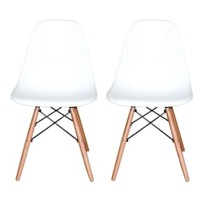 Conjunto 2 Cadeiras Charles Eames Eiffel Wood Base Madeira - Branca - Branco