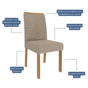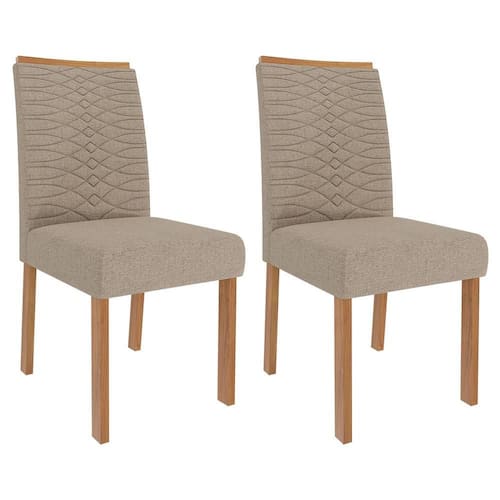 Conjunto 2 Cadeiras Clarice Wood - Cimol Móveis O Conjunto de Cadeiras Clarice Wood combina sofisticação e resistência, com estrutura e pés em Madeira Tauari e acabamento em verniz. O assento revestido em tecido e espuma de alta densidade proporciona conforto, enquanto o encosto com detalhe bordado adiciona um toque de elegância. Com design clássico e acabamento refinado, cada cadeira suporta até 100kg, tornando-se a escolha perfeita para compor ambientes acolhedores e sofisticados.