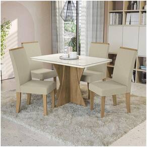 Acabamento: Pintura Touch | Acabamento do assento: Tecido Liso com espuma | Acabamento do encosto: Tecido com costura e espuma | Altura do assento: 50cm | Cor: Linho Bege | Estrutura da cadeira: Eucalipto e MDF | Peso máximo suportado: 120 Kg | Puxadores: Madeira | Sistema de montagem: Sistema Philips e Sextavado