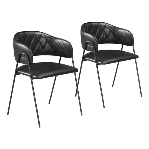 Conjunto 2 Cadeiras De Jantar Veneza no Couro Preto e Metal Preto