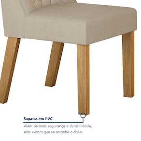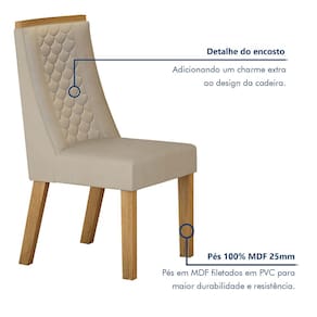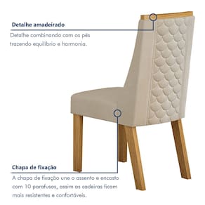 Altura; 99 Largura; 45 Profundidade; 43 Cor Predominante; Bege Garantia; 03 meses Revestimento do Encosto; Veludo Tipo de Assento; Fixo Almofada do Assento; Fixa Enchimento do Assento; Espuma D-23 Revestimento do Assento; Veludo Enchimento do Encosto; Espuma D-18 Possui Rodízio; Não Material dos Pés; Madeira Cor dos Pés; Marrom Estilo; Moderno Necessita Montagem; Sim Complexidade da Montagem; Alta: deve ser montado por um montador especializado Recomendações de Uso, Manutenção e Limpeza; Recomendamos que a limpeza seja feita apenas com pano umedecido. Sistema de Montagem; Parafusos. Itens Inclusos; Conjunto 2 cadeiras e manual de instrução. Suporta Até -kg-; 120 Dobrável; Não Giratória; Não Possui Apoio para Braços; Não Possui Apoio para os Pés; Não Marca: Não Informado