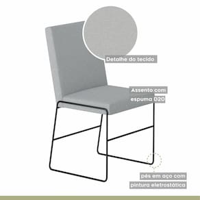 Charme e elegância vão completar sua sala de jantar com este atraente Conjunto com 2 Cadeiras Dubai. Você poderá recepcionar amigos, familiares e convidados e, ao mesmo tempo, dar um up na decoração do ambiente, deixando-o mais sofisticado e aconchegante. Acabamento da Estrutura: Não se Aplica Almofada do assento: Fixa Altura do assento até o chão: 48.0000 Ambiente Principal: Sala de Jantar codigo_ean: 7908506276758 Complexidade da Montagem: Baixa: pode ser montado por uma pessoa sozinha Cor: Linho Cinza Claro/Preto Fosco Cor: Linho Cinza Claro/Preto Fosco Cor do Produto: Linho Cinza Claro/Preto Fosco Dobrável: Não Enchimento do Assento: Espuma D-23 Enchimento do Encosto: Espuma D-20 Escala de Brilho: Fosco Estrutura do Assento: Aço Estrutura do Encosto: Aço Giratória: Não Itens Inclusos: 2 assentos/encosto e 2 bases metálicas Linha ou Coleção: Moderna Manual de Montagem e Instalação: https://product-hub-prd.madeiramadeira.com.br/704145/documents/e89c704f-d71d-4cd9-ac34-c8d890d90443859820cadeiradubai.pdf Manutenção: Não utilizar produtos químicos. Não utilizar produtos abrasivos. Não molhar. Utilizar pano macio e seco ou levemente umedecido. Material da Base: Aço Material Principal: Madeira Necessita Montagem: Sim Origem do Produto: Nacional Peso: 9,155 kg Possui Apoio para Braços: Não Possui Apoio Para os Pés: Não Possui Rodízio: Não Quantidade de Itens: 2 Recomendações de Uso, Manutenção e Limpeza: Não utilizar produtos químicos. Não utilizar produtos abrasivos. Não molhar. Utilizar pano macio e seco ou levemente umedecido. Revestimento do Assento: Tecido Revestimento do Encosto: Tecido Sistema de Montagem: Parafusos Tipo de Assento: Fixo Tipo de Encosto: Fixo Tipo de Madeira Maciça: Pinus