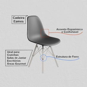 A Cadeira Eames combina design moderno, conforto e resistência, sendo uma excelente escolha para compor salas de jantar, escritórios, cozinhas ou ambientes comerciais. Inspirada no clássico estilo Eames, ela traz um visual atemporal que valoriza qualquer espaço com elegância e personalidade.
