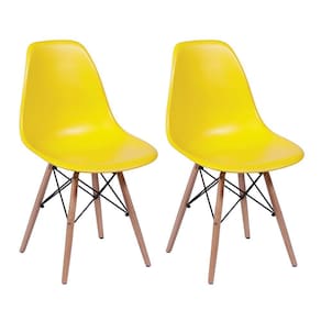 O Conjunto 2 Cadeiras Eiffel com Base em Madeira – Amarelo é ideal para compor e decorar ambientes. Composto por cadeiras Eames Eiffel que suportam até 120kg cada e possuem assento em Polipropileno, o conjunto é perfeito para proporcionar conforto e beleza para sua casa.