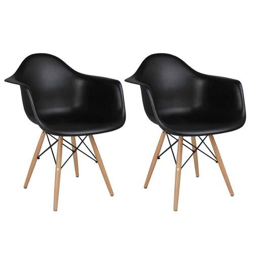 Características principais: • Contém: 2 Cadeiras Eiffel com Braço Pretas; • Combinam com diversos ambientes; • Modernas; • Design único; • Encosto arredondado; • Assento em Polipropileno; • Pés em madeira; • Peso Suportado: 120kg (por cada cadeira); • Medidas (de cada cadeira): Altura: 82cm | Largura: 44cm | Comprimento: 62cm.