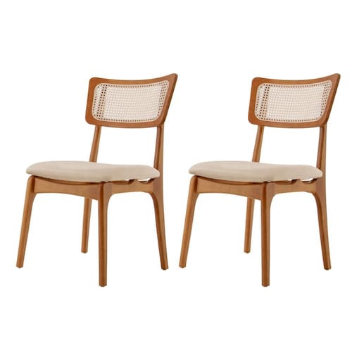 O assento é confeccionado com espuma de alta densidade D26, que garante conforto mesmo em longos períodos de uso. Revestido com tecido,oferece uma textura suave e aconchegante, ideal para quem busca sofisticação e bem-estar. O encosto em telinha natural proporciona ventilação e um toque artesanal ao design, reforçando a sensação de leveza e naturalidade. Acabamento: Verniz Acabamento da Estrutura: Pintura Almofada do assento: Fixa Altura do assento até o chão: 47 cm Ambiente Principal: Sala de Jantar codigo_ean: 7900288196255 Cor: Off White / Imbuia Natural Cor do Produto: Off White / Imbuia Natural Dobrável: Não Escala de Brilho: Semi-Brilho Estrutura do Assento: Madeira Maciça Estrutura do Encosto: Madeira Giratória: Não Informações Complementares: Produto feito de madeira maciça tauari, espuma super confortavel, para maior conforto e durabilidade Itens Inclusos: 2 Cadeiras, Kit Ferragens e Manual de Montagem Linha ou Coleção: Ravena Manual de Montagem e Instalação: https://product-hub-prd.madeiramadeira.com.br/500615720/documents/4703c7f1-4496-4463-b9a7-10bd0525bc9330181eb75b26bfac3ed1223684.pdf Marca: Mobilare Material da Base: Madeira Maciça Material Principal: Madeira Necessita Montagem: Sim Origem do Produto: Nacional Peso: 8,19 kg Possui Apoio para Braços: Não Possui Apoio Para os Pés: Não Possui Rodízio: Não Quantidade de Itens: 2 Recomendações de Uso, Manutenção e Limpeza: Limpar com pano seco Tipo de Assento: Fixo Tipo de Encosto: Fixo Tipo de Madeira Maciça: Tauari