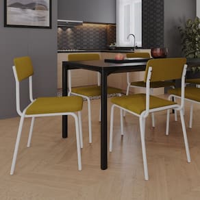 Conjunto 2 Cadeiras Estofadas Fixa Empilhável Fit Mostarda City / Branco Fosco MT