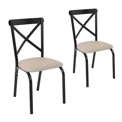A cadeira Karina Ciplafe possuem um design moderno e anatômico. São produzidas em aço carbono, assento de madeira com 5 pontos de fixação em porcas agarras metálicas, estofado em courino sintético de fácil limpeza e pintura automotiva com tinta epóxi-pó eletrostática, deixando o produto com maior resistência e maior proteção contra corrosão e ferrugem. Acabamento: Pintura Epóxi Acabamento da Estrutura: Pintura Almofada do assento: Removível Altura do assento até o chão: 47 cm Ambiente Principal: Cozinha Complexidade da Montagem: Baixa: pode ser montado por uma pessoa sozinha Cor: Preto Fosco/Bege Cor do Produto: Preto Fosco/Bege Cor dos Pés: Preto Dobrável: Não Enchimento do Assento: Espuma D-20 Escala de Brilho: Fosco Estrutura do Assento: Madeira Estrutura do Encosto: Aço Giratória: Não Itens Inclusos: 2 Cadeiras, Kit Ferragens e Manual de Montagem Linha ou Coleção: Karina Manual de Montagem e Instalação: https://product-hub-prd.madeiramadeira.com.br/910893/documents/32f791bb-1b07-472f-99a2-6709c54c55e8198793760017169146061152.pdf Material dos Pés: Plástico e Metal Material Principal: Aço Carbono Necessita Montagem: Sim Origem do Produto: Nacional Peso: 4,25 kg Possui Apoio para Braços: Não Possui Apoio Para os Pés: Não Possui Rodízio: Não Quantidade de Itens: 2 Recomendações de Uso, Manutenção e Limpeza: Limpar com pano levemente umedecido. Não usar produtos abrasivos que possam danificar a superfície do móvel. Revestimento do Assento: Courino Sintético Revestimento do Encosto: Aço Sistema de Montagem: Parafuso Tipo de Assento: Fixo Tipo de Encosto: Fixo