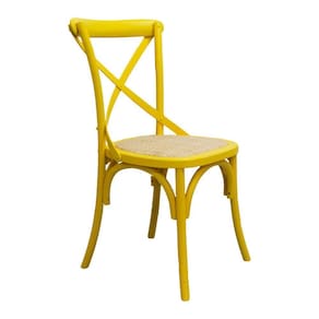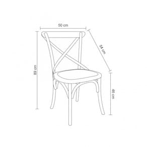Cadeira fixa destinada para uso interno, estrutura física em madeira bétula, com encosto vazado em formato X e assento revestido com rattan marroml. Não reclinável, sem ajuste de altura, não empilhável.