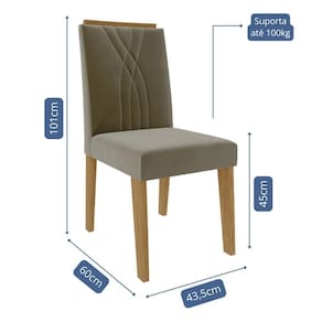 Conjunto 2 Cadeiras Nicole Nature/suede Joli - Cimol Móveis Nature/suede Joli Conjunto 2 Cadeiras Nicole - Cimol Móveis O Conjunto de Cadeiras Nicole une sofisticação e conforto para compor sua sala de jantar com elegância. Sua estrutura em MDF com acabamento em pintura UV garante resistência e durabilidade. O assento revestido em tecido e a espuma de alta densidade proporcionam máximo conforto. O encosto com detalhes bordados e a moldura em MDF com acabamento em laca agregam um toque refinado ao design. Com pés em MDF e capacidade para suportar até 100kg, é a escolha perfeita para quem busca estilo e qualidade. ESPECIFICAÇÕES: - Estrutura em MDF - Pintura UV - Revestimento em tecido - Espuma de alta densidade - Encosto com detalhes bordados - Moldura em MDF com acabamento em laca - Pés em MDF - Cada cadeira tem capacidade para suportar até 100kg