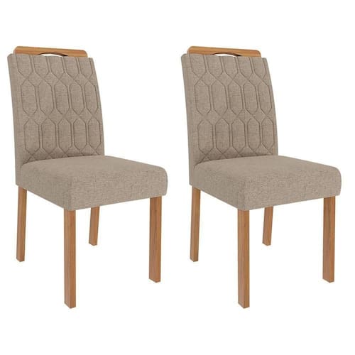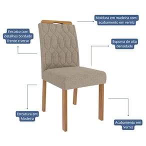 Conjunto 2 Cadeiras Paola Wood Madeira/linho Bege - Cimol Móveis Madeira/linho Bege Conjunto 2 Cadeiras Paola Wood - Cimol Móveis O Conjunto de Cadeiras Paola Wood combina sofisticação e resistência, com estrutura e pés em Madeira Tauari e acabamento em verniz. O assento revestido em tecido e espuma de alta densidade proporciona conforto, enquanto o encosto com detalhe bordado adiciona um toque de elegância. Com design clássico e acabamento refinado, cada cadeira suporta até 100kg, tornando-se a escolha perfeita para compor ambientes acolhedores e sofisticados. ESPECIFICAÇÕES: - Estrutura em Madeira Tauari - Acabamento em verniz - Revestimento em tecido - Espuma de alta densidade - Encosto com detalhe bordado frente e verso - Moldura em madeira com acabamento em verniz - Pés em Madeira Tauari - Cada cadeira tem capacidade para suportar até 100kg