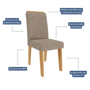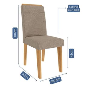 Conjunto 2 Cadeiras Taís Nature/linho Bege - Cimol Móveis Nature/linho Bege Conjunto 2 Cadeiras Taís - Cimol Móveis Com um design sofisticado e elegante, o Conjunto de Cadeiras Taís é ideal para compor sua sala de jantar com charme e conforto. Sua estrutura em MDF com pintura UV garante durabilidade, enquanto o assento revestido em tecido e a espuma de alta densidade oferecem máximo aconchego. O encosto com detalhes bordados e a moldura em MDF com acabamento em laca adicionam um toque refinado ao visual. Com pés em MDF e capacidade para suportar até 100kg, é a escolha perfeita para quem valoriza qualidade e estilo. ESPECIFICAÇÕES: - Estrutura em MDF - Pintura UV - Revestimento em tecido - Espuma de alta densidade - Encosto com detalhes bordados - Moldura em MDF com acabamento em laca - Pés em MDF - Cada cadeira tem capacidade para suportar até 100kg