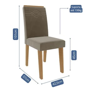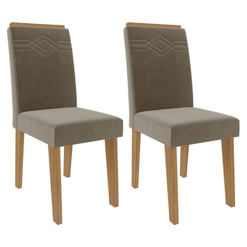 Conjunto 2 Cadeiras Taís Nature/suede Joli - Cimol Móveis Nature/suede Joli Conjunto 2 Cadeiras Taís - Cimol Móveis Com um design sofisticado e elegante, o Conjunto de Cadeiras Taís é ideal para compor sua sala de jantar com charme e conforto. Sua estrutura em MDF com pintura UV garante durabilidade, enquanto o assento revestido em tecido e a espuma de alta densidade oferecem máximo aconchego. O encosto com detalhes bordados e a moldura em MDF com acabamento em laca adicionam um toque refinado ao visual. Com pés em MDF e capacidade para suportar até 100kg, é a escolha perfeita para quem valoriza qualidade e estilo. ESPECIFICAÇÕES: - Estrutura em MDF - Pintura UV - Revestimento em tecido - Espuma de alta densidade - Encosto com detalhes bordados - Moldura em MDF com acabamento em laca - Pés em MDF - Cada cadeira tem capacidade para suportar até 100kg