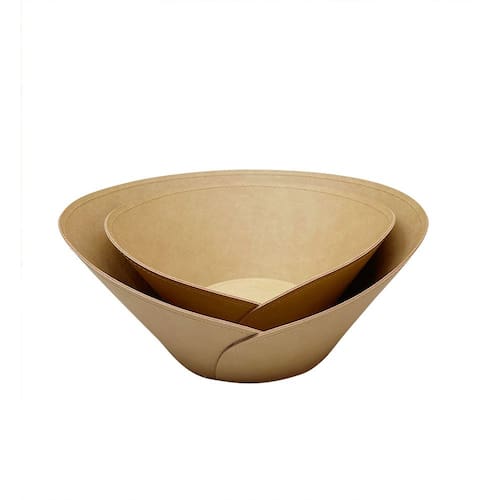 Cód: TH0119 Conjunto 2 Centros de Mesa em Couro Sintético Bege Material: Couro Sintético Cor: Bege Dimensões: Centro de Mesa P: 24x22x12cm (CxLxA) Centro de Mesa G: 30x26x14cm (CxLxA)