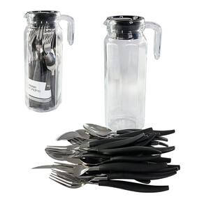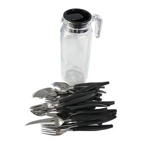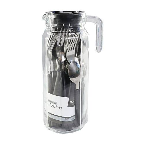 CONTÉM:01 CONJUNTO DE TALHERES 25 PEÇAS PRETO COM JARRA DE VIDRO