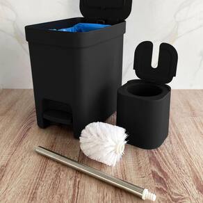 Este conjunto de banheiro com dois suportes com escovas para vaso sanitário na cor preto da linha Dual possui design modular, minimalista, indispensável na composição do seu banheiro ou lavabo. As escovas deixam o seu vaso limpo e cheiroso, sem precisar entrar em contato com ele, tornando a higienização mais fácil e prática. E após a limpeza, as escovas sanitárias são colocadas nos suportes sem causar sujeira, os suportes possuem tampas que os mantém mais vedados e a abertura e fechamento é acionado pelas próprias escovas. É o conjunto perfeito para deixar o seu banheiro limpo, bonito e organizado.