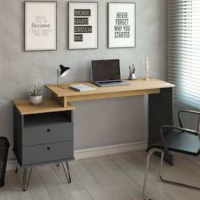 Conjunto 2 Escrivaninhas Plus Estilo Industrial Olmo/Grafito - Cinza
